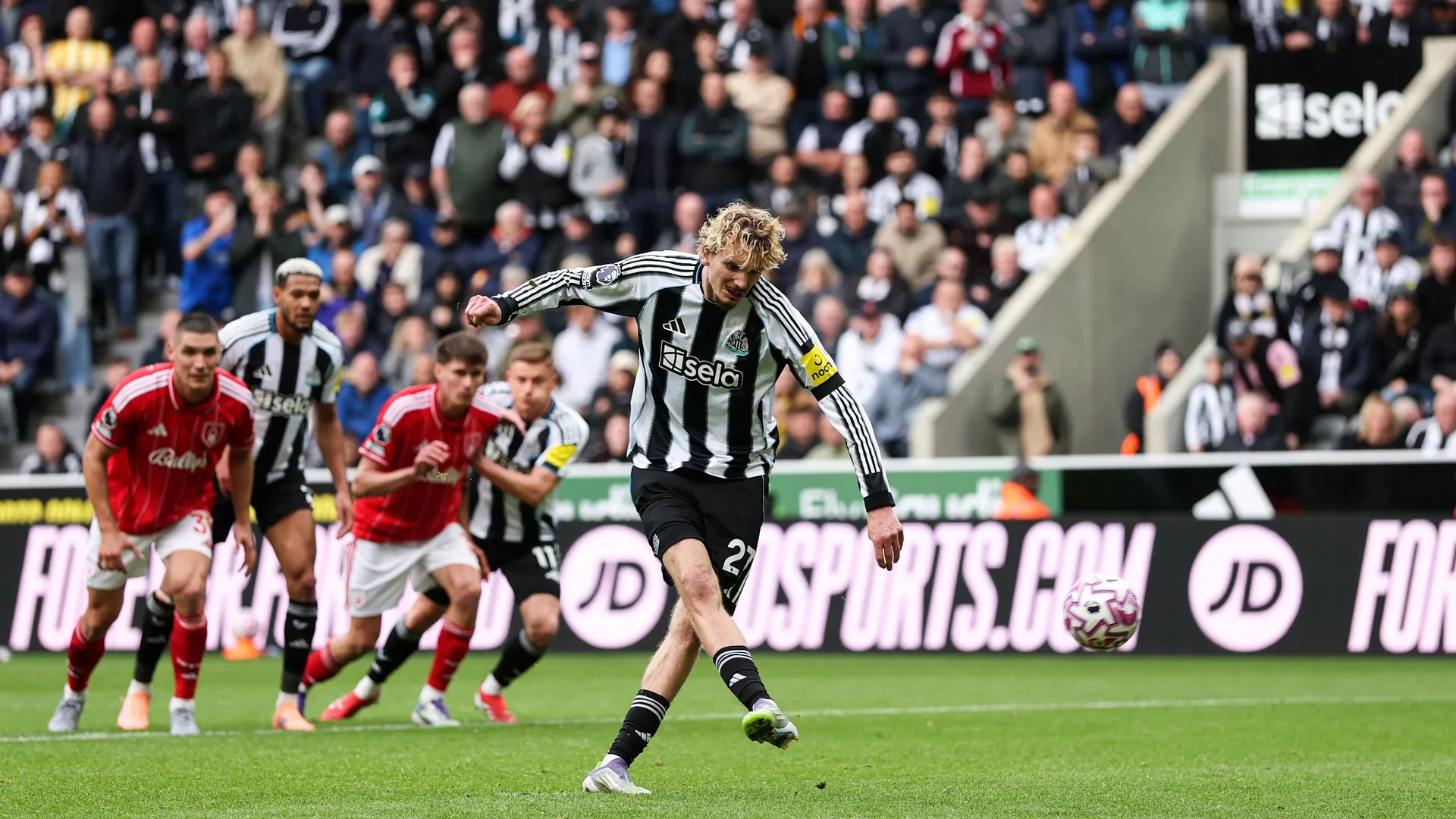 وفي نفس التوقيت، أكرم نيوكاسل ضيافة نوتنجهام فورست بهدفين في الشوط الثاني عن طريق البرازيلي برونو جيماريش في الدقيقة 58، ومهاجم الفريق الجديد، الألماني فولتماده في الدقيقة 84 من علامة الجزاء، ليتقدم المجبايس إلى المركز ال11، مستغلا تعادل برايتون مع متذيل الترتيب ولفرهامبتون بهدف لكل فريق.