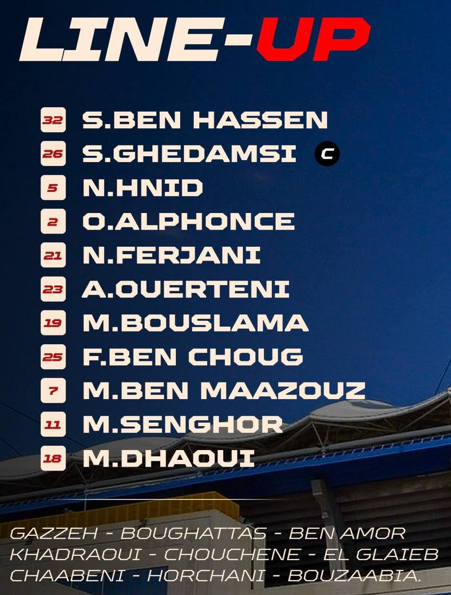 بينما إختار لسعد دريدي المدير الفني لنادي النجم التشكيل التالي لمواجهة أصحاب الأرض: