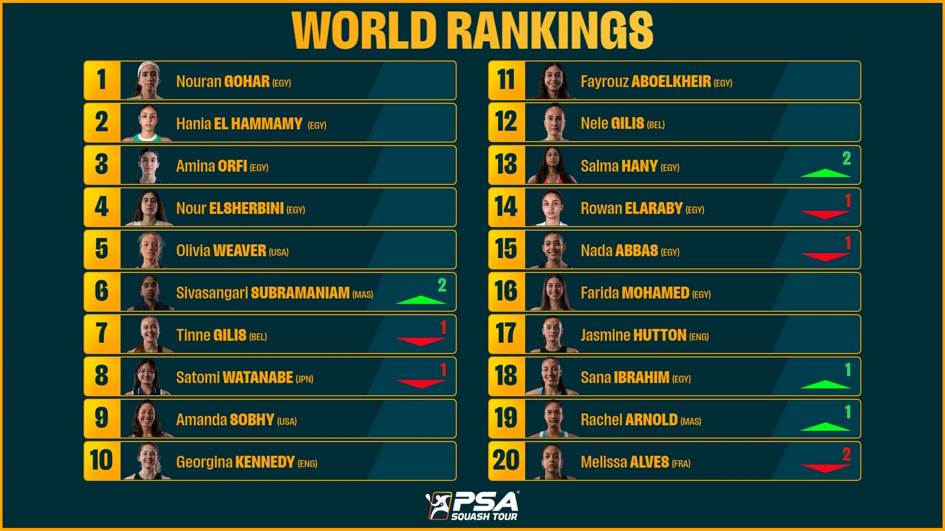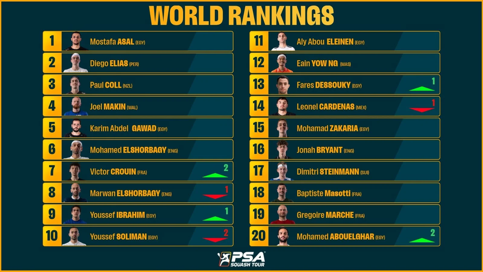 أعلنت رابطة اللاعبين المحترفين للاسكواش، اليوم الاثنين، عن التصنيف العالمي الجديد للرجال والسيدات لموسم 2025-2026، والذي شهد استمرار الهيمنة المصرية على قمة اللعبة، حيث واصل مصطفى عسل ونوران جوهر، لاعبا نادي بالم هيلز، تصدر الترتيب العالمي.