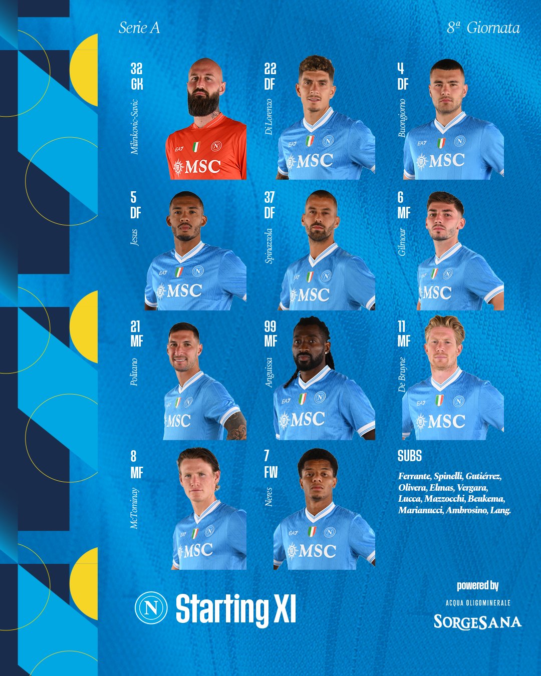 وبعدها بدقيقة واحدة فقط، تمكن نابولي من تسجيل هدف التقدم عبر كيفن دي بروين في الدقيقة 33 من ركلة جزاء نفذها بإتقان، قبل أن يتعرض هو الآخر لإصابة أجبرته على الخروج من المباراة بعد أربع دقائق من الهدف.