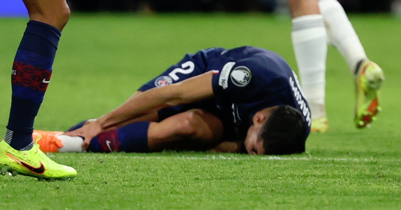 صاحب ال27 عام خرج محمولا على الأكتاف وهو يبكي، مما أثار قلق جماهير الفريق الباريسي بالإضافة لجماهير المنتخب المغربي، من إمكانية أن تكون الإصابة خطيرة، مما يعني أنه سيكون مهدد بالغياب لفترة طويلة عن الملاعب.