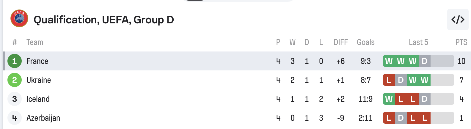 ويستعد المنتخب الفرنسي لمواجهة نظيره الأوكراني مساء اليوم على ملعب حديقة الأمراء في باريس في تصفيات كأس العالم 2026، قبل أن يحل ضيفا على أذربيجان يوم الأحد المقبل بالجولة الأخيرة.
