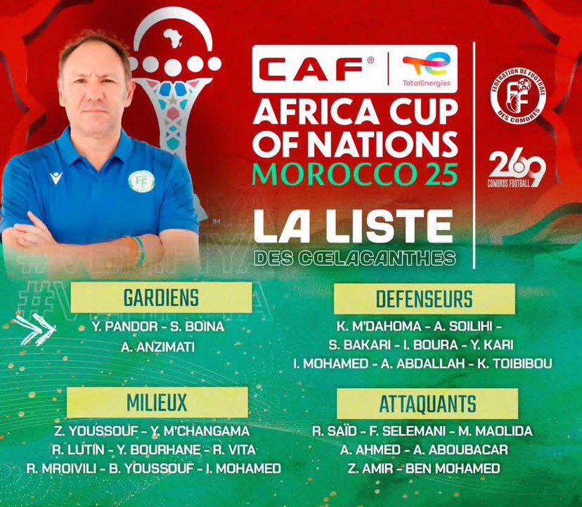 أعلن الإيطالي ستيفانو كوزين المدير الفني لمنتخب جزر القمر عن القائمة المشاركة في بطولة كأس الأمم الأفريقية 2025.
