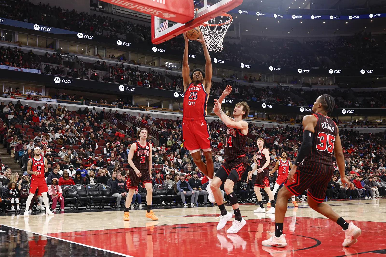 وعلى صالة يونايتد سنتر، خسر شيكاغو بولز امام نيو اورليانز بيليكانز بنتيجة 114-104، في لقاء غاب عنه اللاتفي كريستابس بورزينجيس بسبب المرض. وسجل المونتينيجري نيكولا فوسيفيتش 12 نقطة، بينما اكتفى الليتواني ماتاس بوزيليس بتسع نقاط، في حين يستمر غياب الفرنسي نوا ايسينغ حتى نهاية الموسم بعد جراحة في الكتف. ومن جانب بيليكانز، اكتفى الكرواتي كارلو ماتكوفيتش باربع نقاط.
