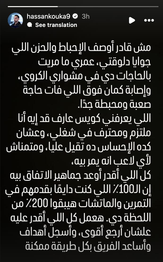 وقال كوكا على صفحته بمواقع التواصل الإجتماعي: “لا أستطيع وصف الإحباط والحزن بداخلي حاليا، لم أمر بهذا من قبل في مشواري الكروي، التعرض لإصابة جديدة أمر صعب ومحبط جدا. من يعرفني جيدا يدرك التزامي واحترافي في عملي، لهذا السبب الإحساس ثقيل علي، لا أتمنى لأي لاعب ان يمر به، كل ما أستطيع فعله حاليا هو وعد جماهير الاتفاق أن أقدم 200% خلال الفترة القادمة من أجل التعافي والعودة سريعا”.