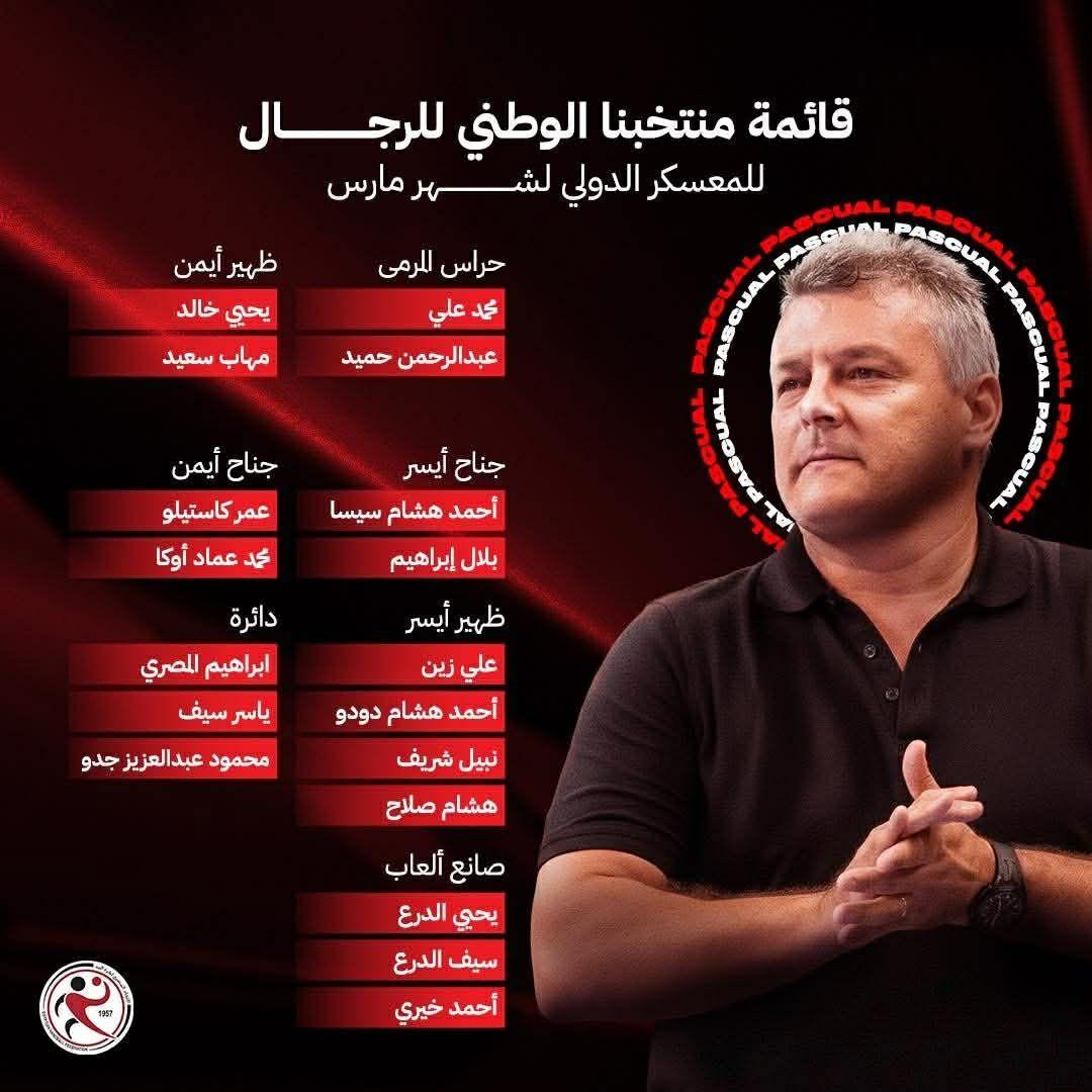 أعلن الإسباني خافيير باسكوال، المدير الفني لمنتخب مصر لكرة اليد، قائمة الفراعنة لمعسكر شهر مارس الدولي، المقرر إقامته خلال الفترة من 15 حتى 22 مارس الجاري، ضمن الاستعدادات لبطولة العالم المقرر إقامتها في يناير 2026.