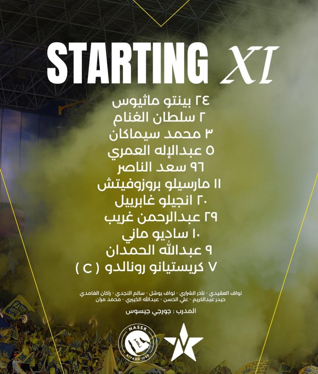البرتغالي خوان جيسوس المدير الفني للنصر إختار البدء بالتشكيل التالي: