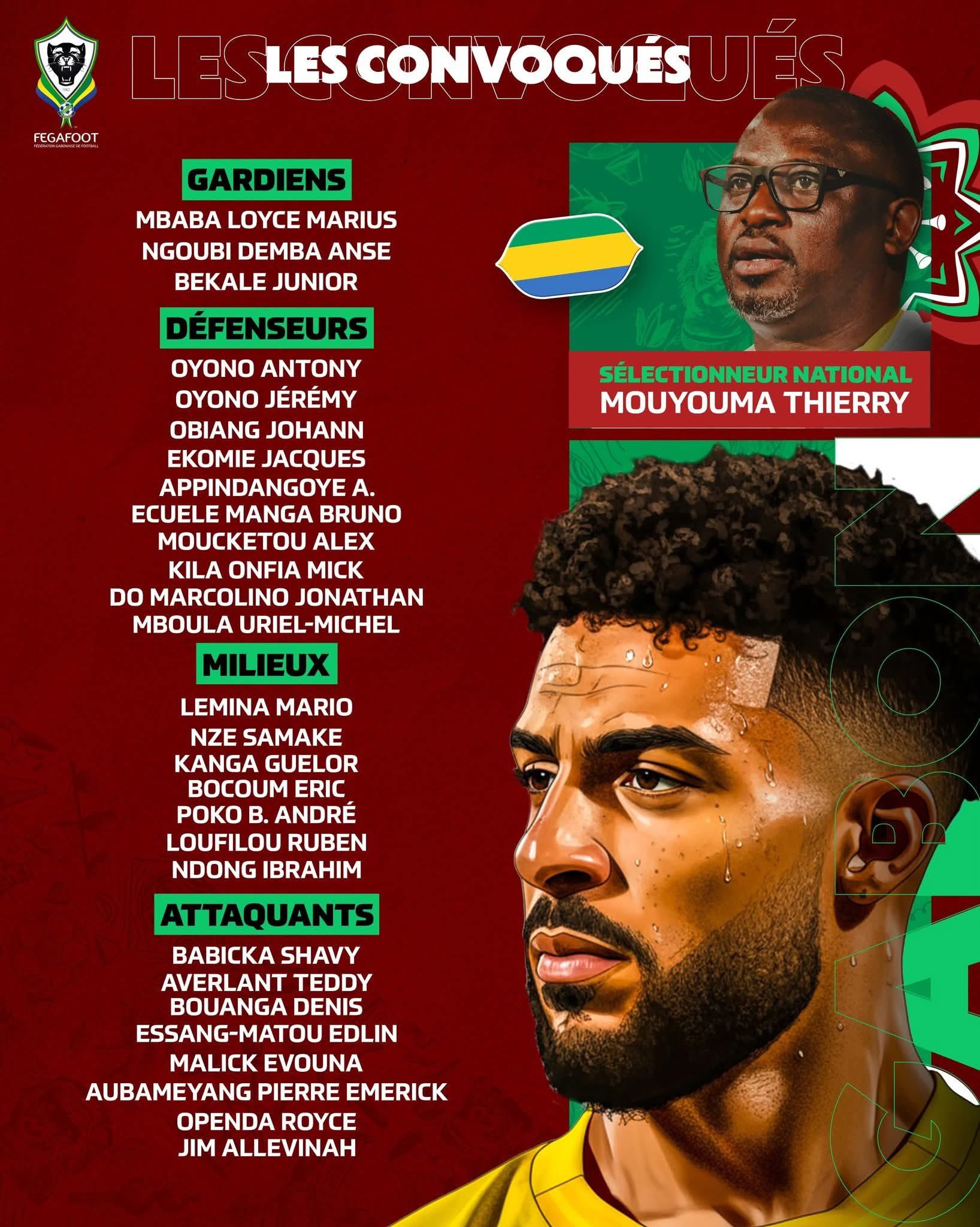 إختار تييري موييوما المدير الفني لمنتخب الجابون القائمة المشاركة في بطولة كأس الأمم الأفريقية والمقرر إقامتها في المغرب خلال الفترة من يوم 21 ديسمبر وحتى 18 يناير 2026.