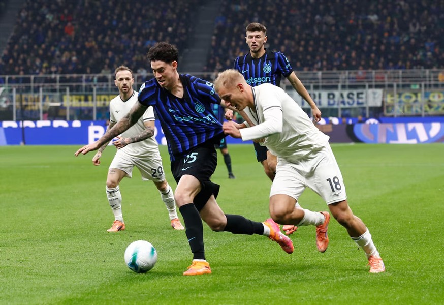 آشاد " ماوريتسيو ساري " مدرب لاتسيو بلاعبي فريقه، بعد تخطي ميلان في بطولة كأس إيطاليا.